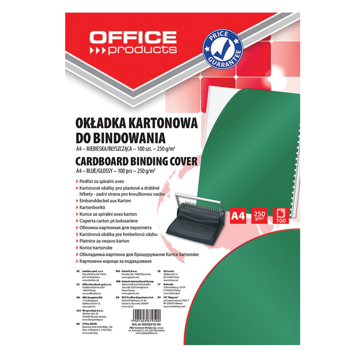 Okładki do bindowania OFFICE PRODUCTS, karton, A4, 250gsm, błyszczące, 100szt., zielone