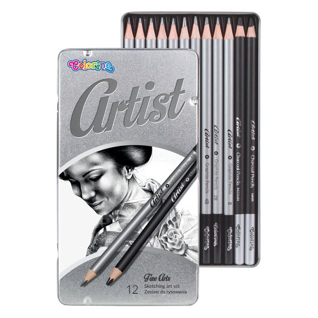 Zestaw do rysowania colorino artist 12 sztuk metalowe pudełko